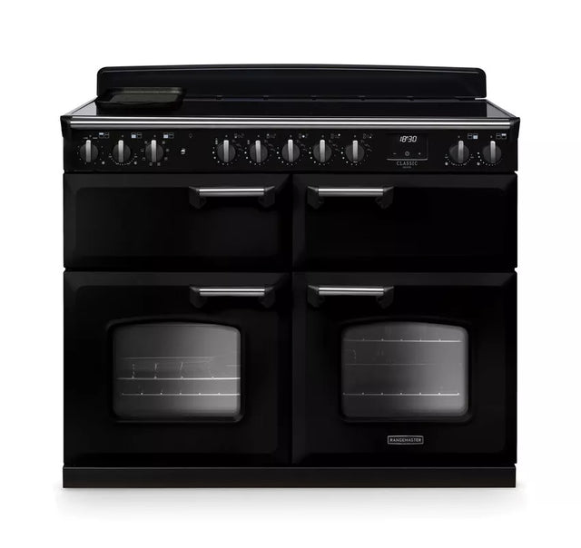 Rangemaster Classic Deluxe 110cm Induction Range Cooker (Slow Cook) - Gloss Black & Chrome | CLDLB110EIPGBL/CM1