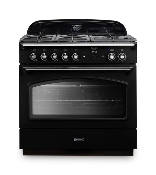 Rangemaster Classic FX 90cm Dual Fuel Range Cooker - Black & Chrome | CLAS90FXDFFBL/C is backordered and will ship as soon as it is back in stock.
