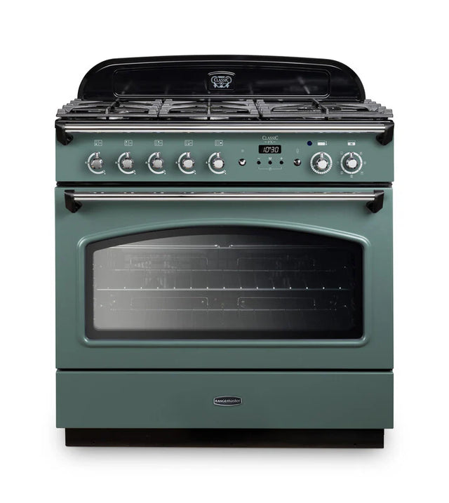 Rangemaster Classic FX 90cm Dual Fuel Range Cooker - Mineral Green & Chrome | CLAS90FXDFFMG/C