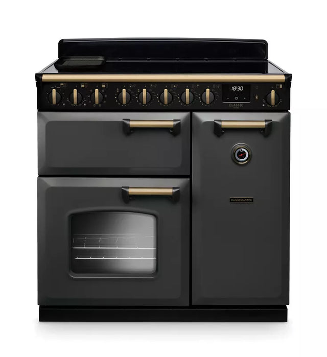 Rangemaster Classic Deluxe 90cm Induction Range Cooker - Slate & Brass | CLDL100EIPSLT/AB1 is backordered and will ship as soon as it is back in stock.