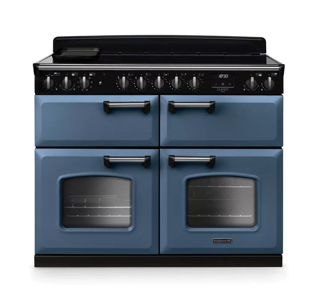 Rangemaster Classic Deluxe 110cm Induction Range Cooker (Slow Cook) - Stone Blue & Chrome | CLDLB110EIPSTB/CM1