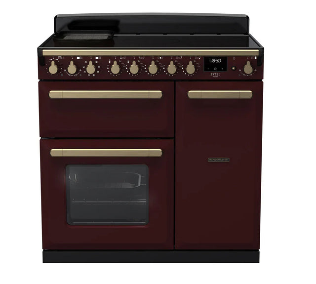 Rangemaster Estel 90cm Induction Range Cooker - Bordeaux & Brass | ESDL90EIPBOR/AB1