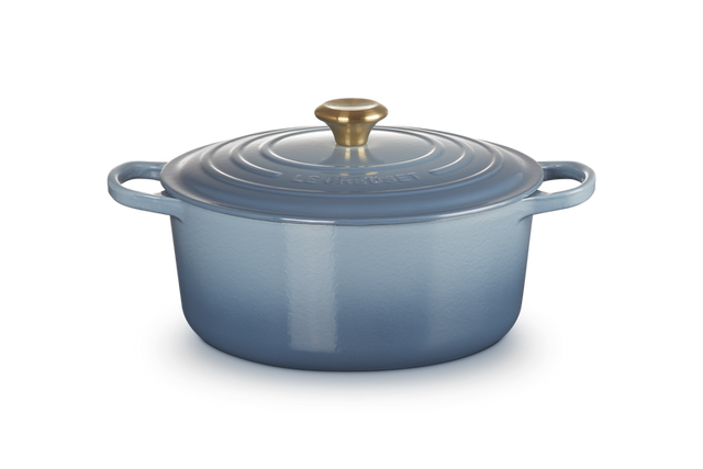 Le Creuset Signature 28cm Cast Iron Round Casserole - Chambray | 21177284344441 is backordered and will ship as soon as it is back in stock.