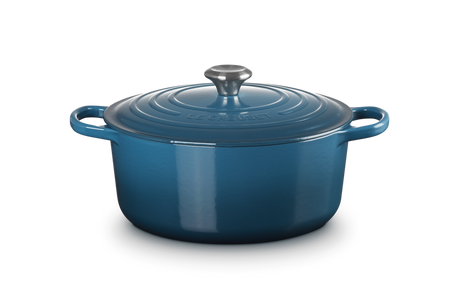 Le Creuset Signature 26cm Cast Iron Round Casserole - Bleu Riviera | 21177260994450