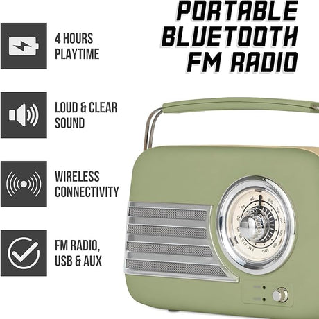 iTek AM/FM Vintage Radio With Bluetooth - Sage | I60028SAG