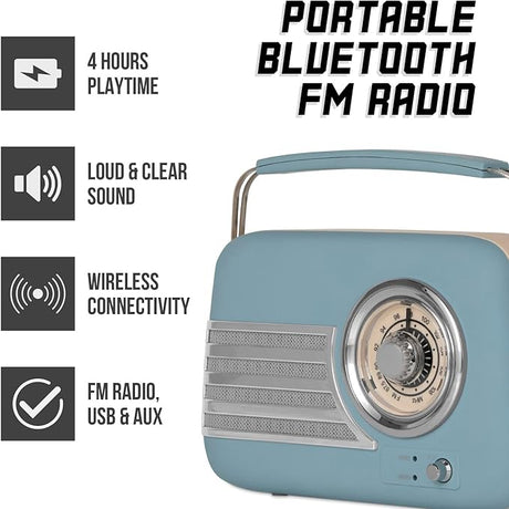 iTek AM/FM Vintage Radio With Bluetooth - Blue | I60028BLU