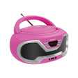 Oakcastle CD200 portable CD player with Bluetooth, FM radio, USB & AUX playback, and carry handle in pink.