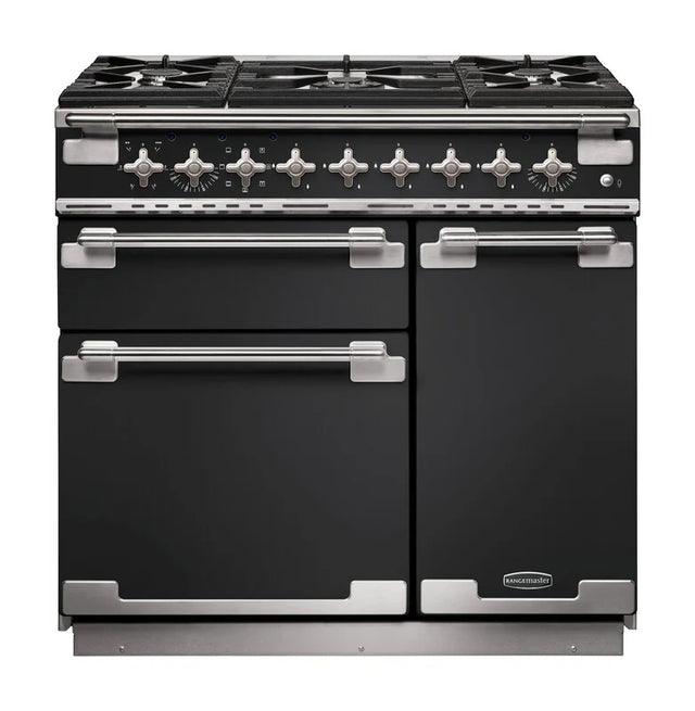 Rangemaster Elise 90cm Dual Fuel Range Cooker - Charcoal Black & Brushed Nickel | ELS90DFFCB/