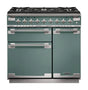Rangemaster Elise 90cm Dual Fuel Range Cooker - Mineral Green & Brushed Nickel | ELS90DFFMG/