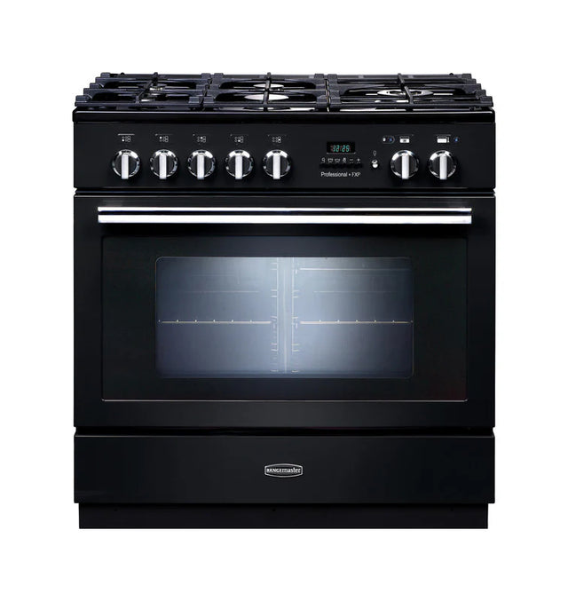 Rangemaster Professional+ FXP 90cm Dual Fuel Range Cooker - Black & Chrome | PROP90FXPDFFGB/C