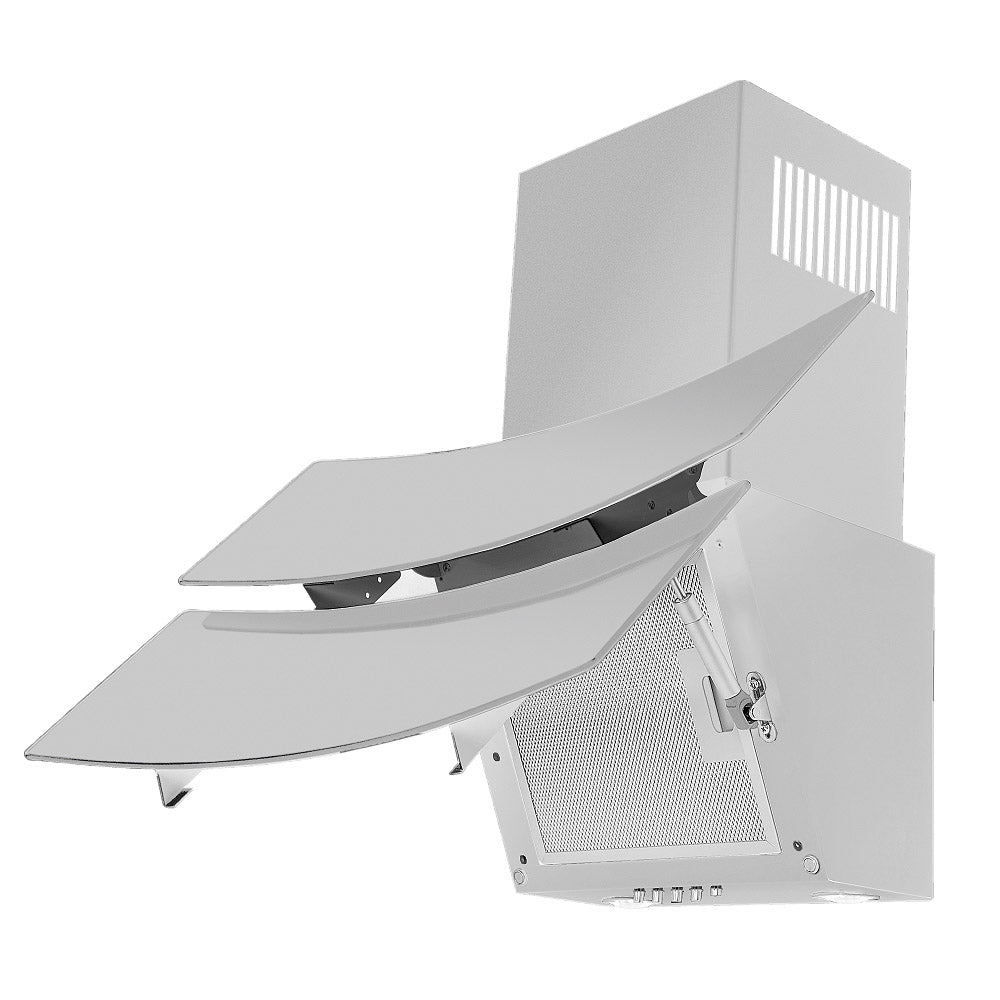 60cm Curved Angled Hubble Cooker Hood In Black Glass or White Glass