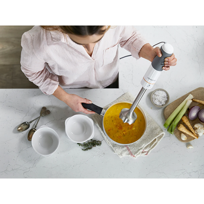 With the patented Triblade System™ technology, the angled blades blend more of your food in less time, specially designed ribs reduce suction and the unique foot shape stops splashing, keeping you and your kitchen clean.