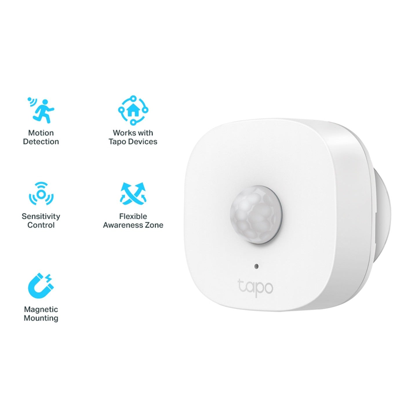 The Tapo T100 Smart Motion Sensor detects movement in your home and automates smart devices for convenience and security. With adjustable sensitivity, a 120° detection range up to 7 meters, and flexible mounting options, it ensures your lights, alarms, and notifications respond exactly how you want. Use it to light rooms automatically, trigger alarms, or create custom Smart Actions with other Tapo devices.